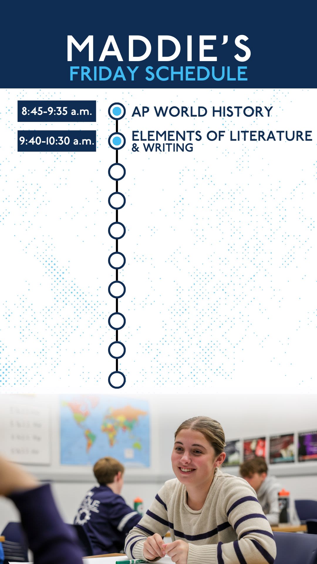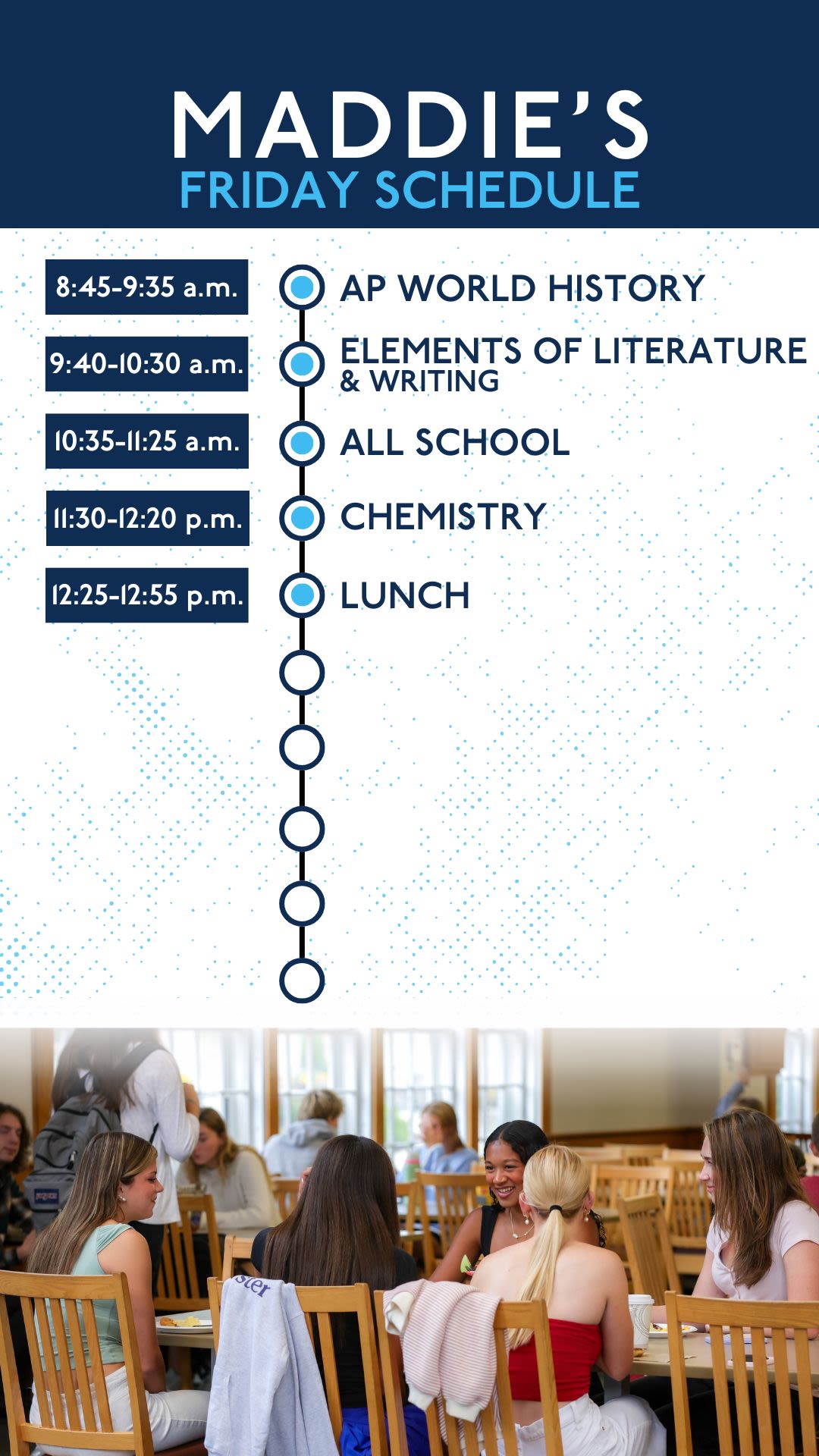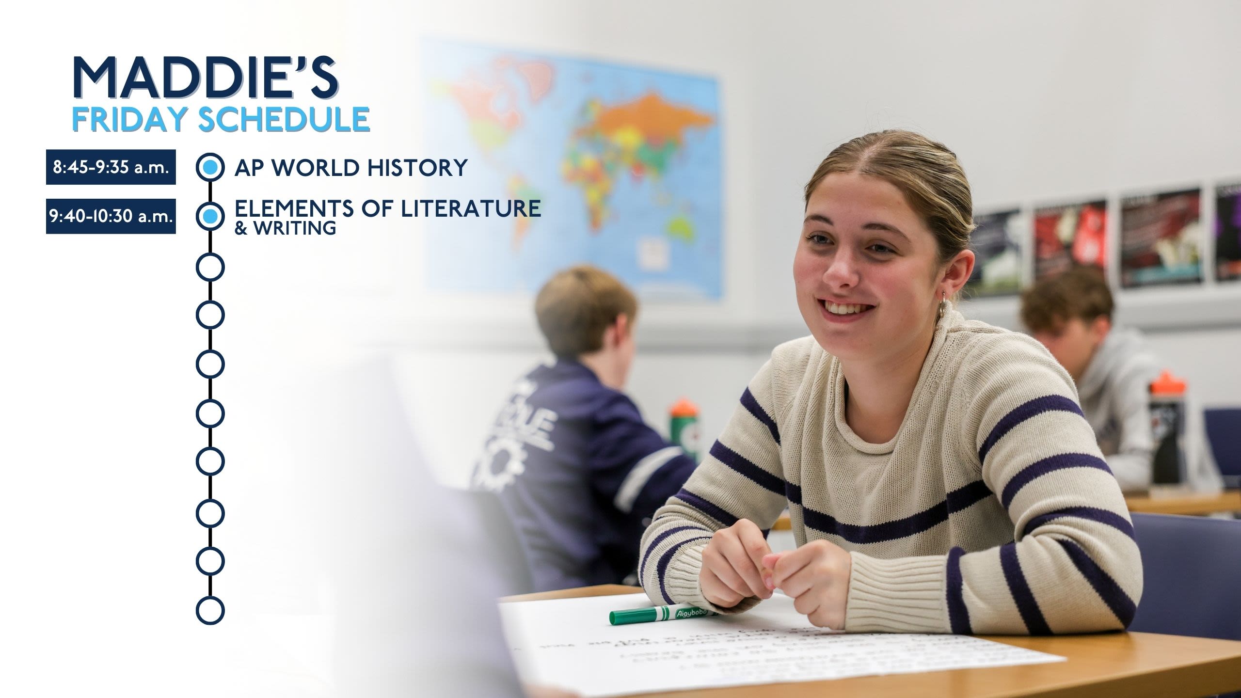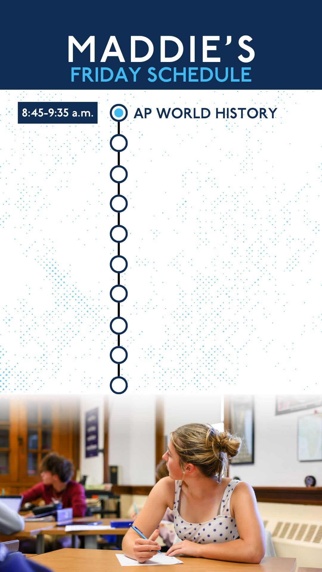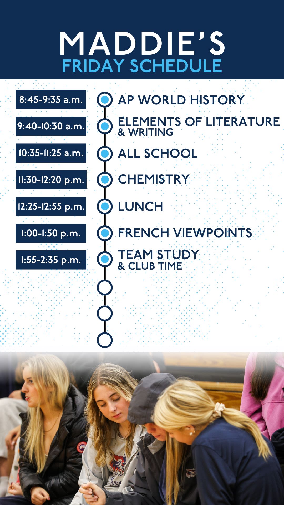 Maddie participates in Morgan’s Message, a club focused on breaking the stigma around mental health for student-athletes. As a club member, she meets with the group to help plan events and initiatives that promote the club’s goals.
