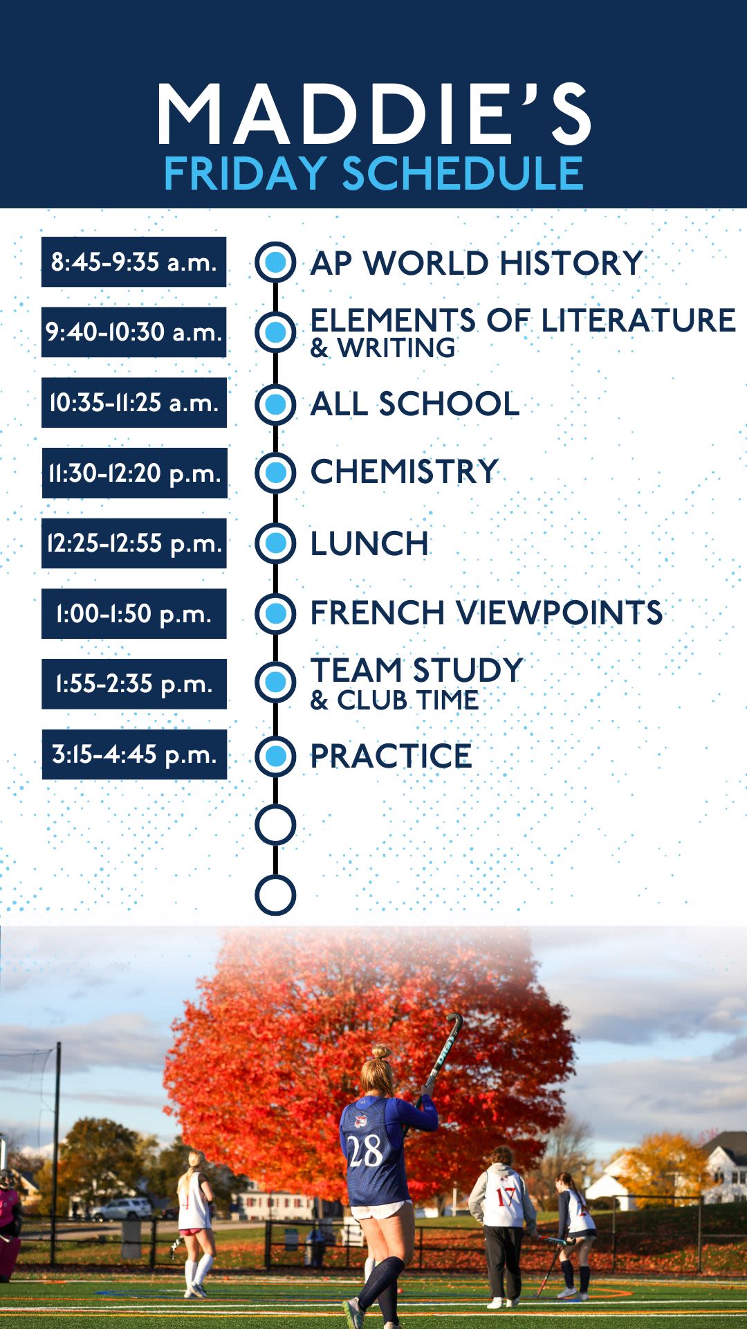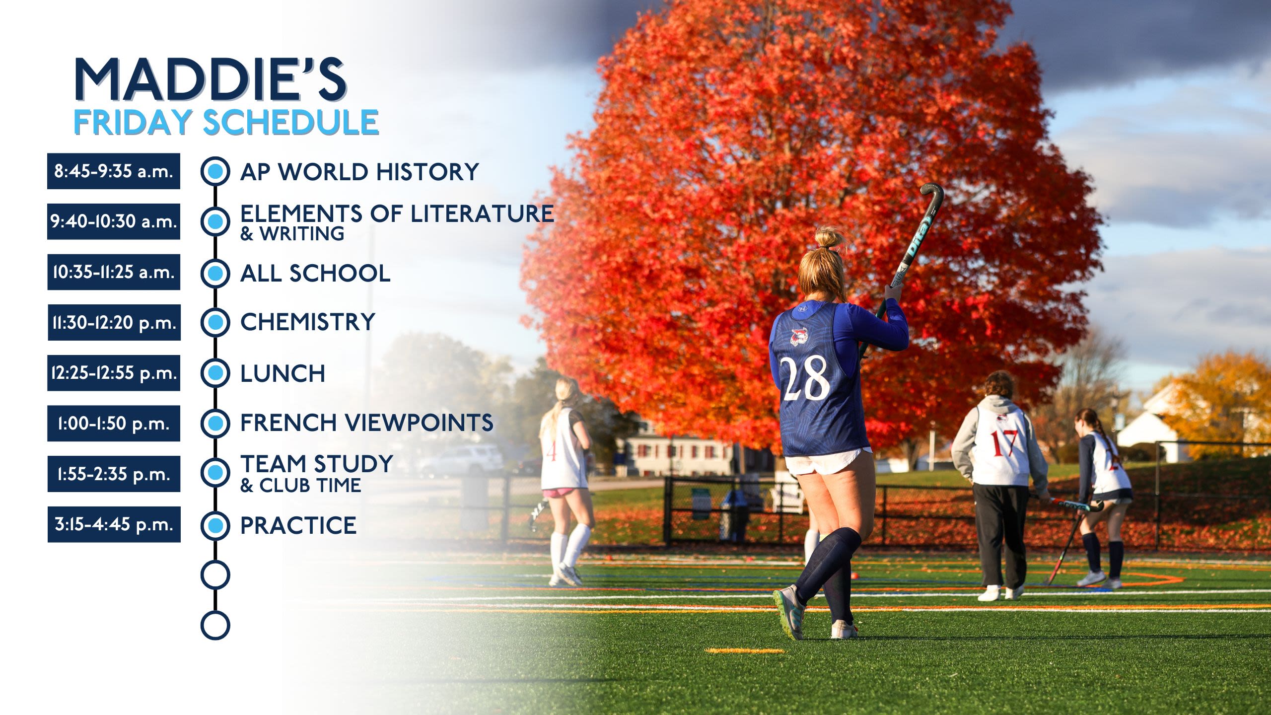Recruited for ice hockey, Maddie has been a varsity athlete every season since her freshman year: field hockey in the fall, ice hockey in the winter, and lacrosse in the spring. She has played all three sports her whole life and values being part of these teams as a central part of her Brewster experience.
