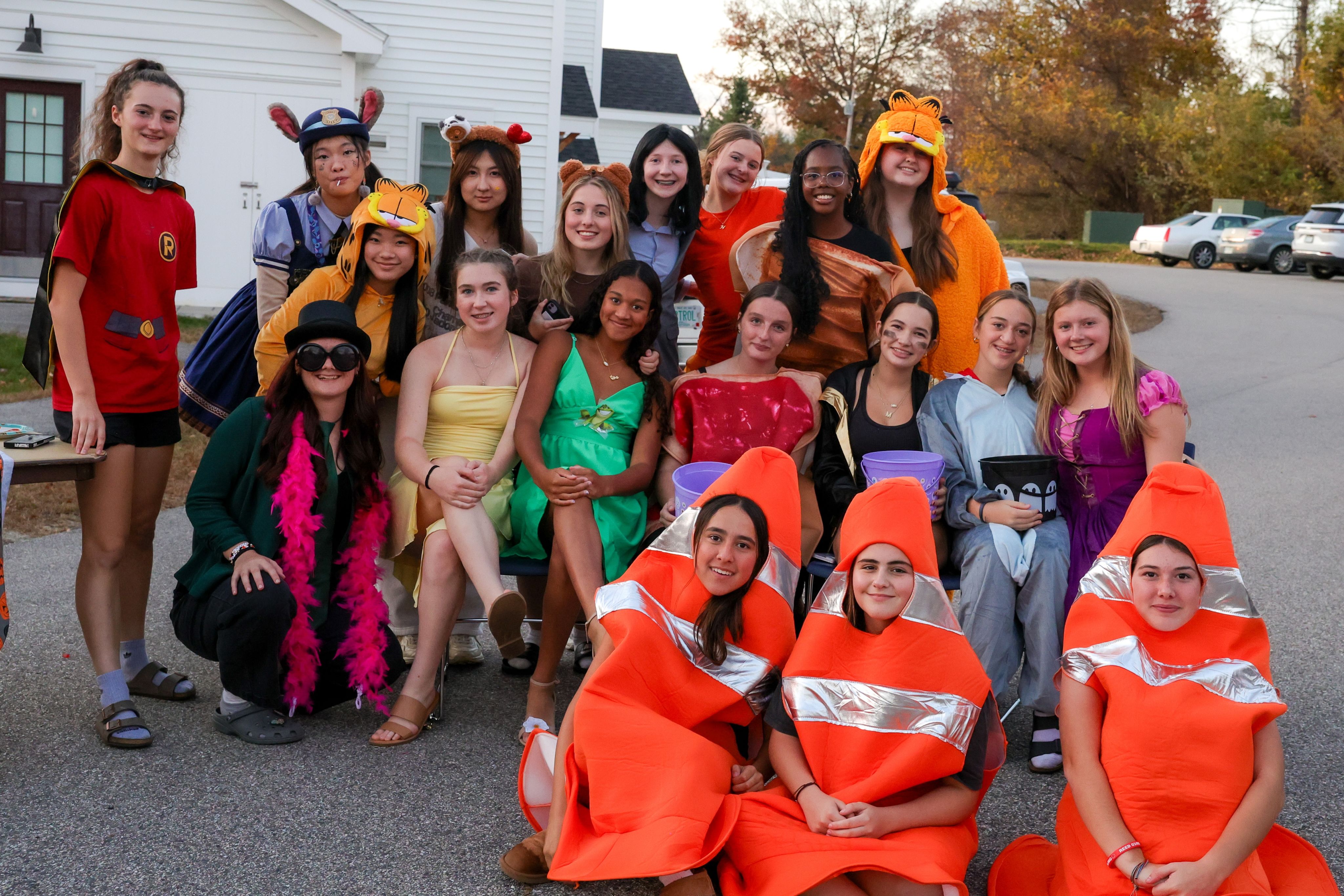 Some of Maddie’s favorite dorm memories include making pasta with friends, relaxing in the lounge, and dressing up for Halloween to hand out candy to local trick-or-treaters (pictured here).